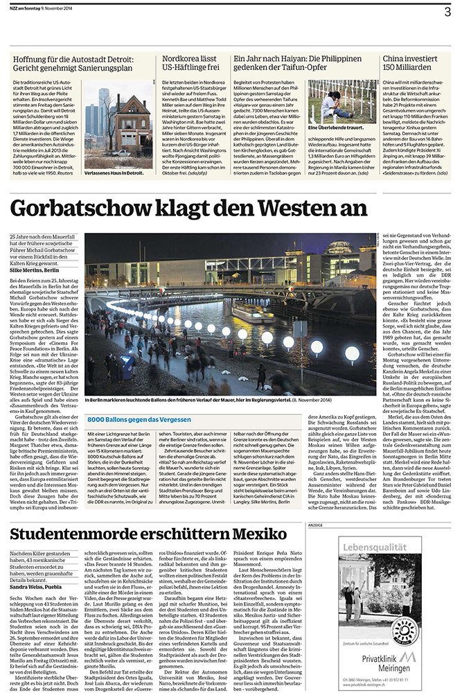 Neue Zürcher Sonntags-Zeitung 09.11.2014